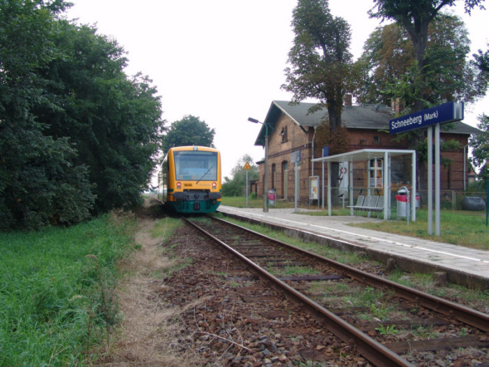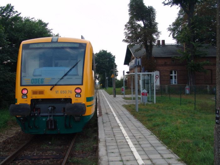 Ein Triebwagen der ODEG am Haltepunk